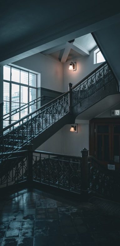 I feel certain that staircase window was wide open when i ascended this staircase, or was it just the wind, i hadn't noticed if the outside trees and bushes had been rustling, but then there was that sudden unexplained gust of cold air which brushed my face on this very rickety old staircase.